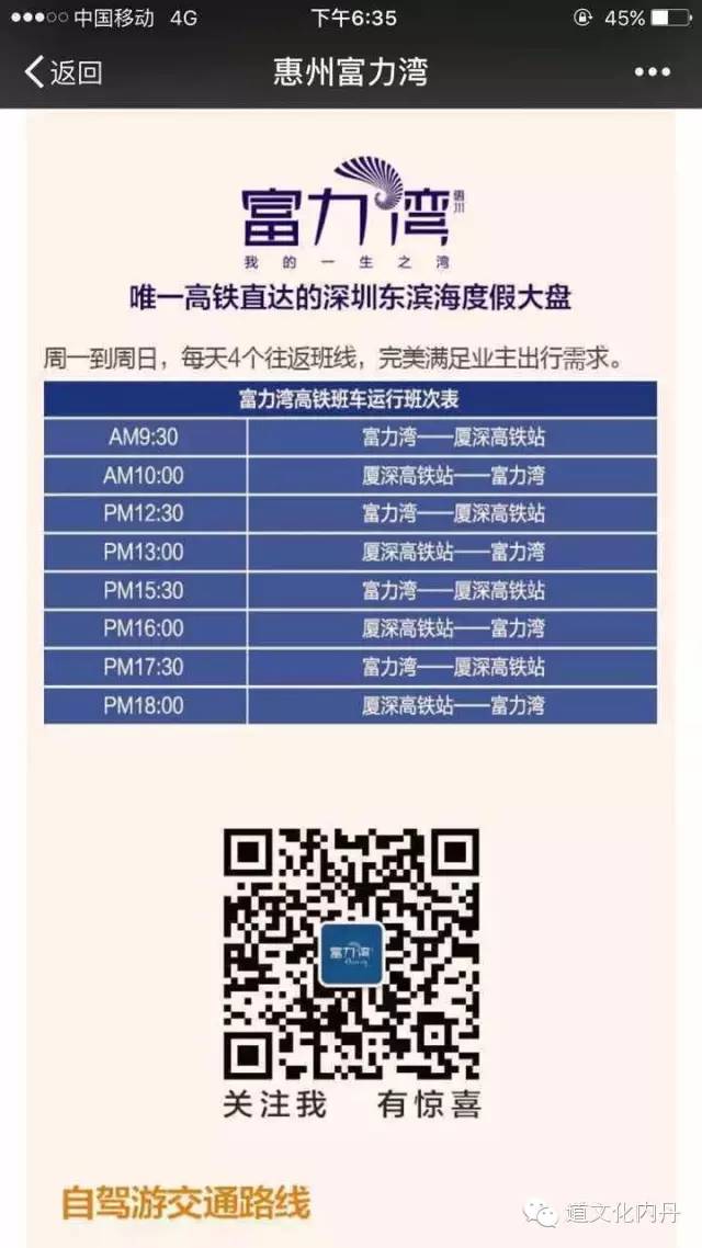另深圳每周六、周日及节假日有直达富力湾的免费班车,发车时间:上午9:30 上车地点:地铁购物公园站B出口富华一路上的免税商务大厦斜对面(停有许多大巴车的地方 ,过来的大巴上有富力湾的logo ) 有需要的师兄可乘坐。